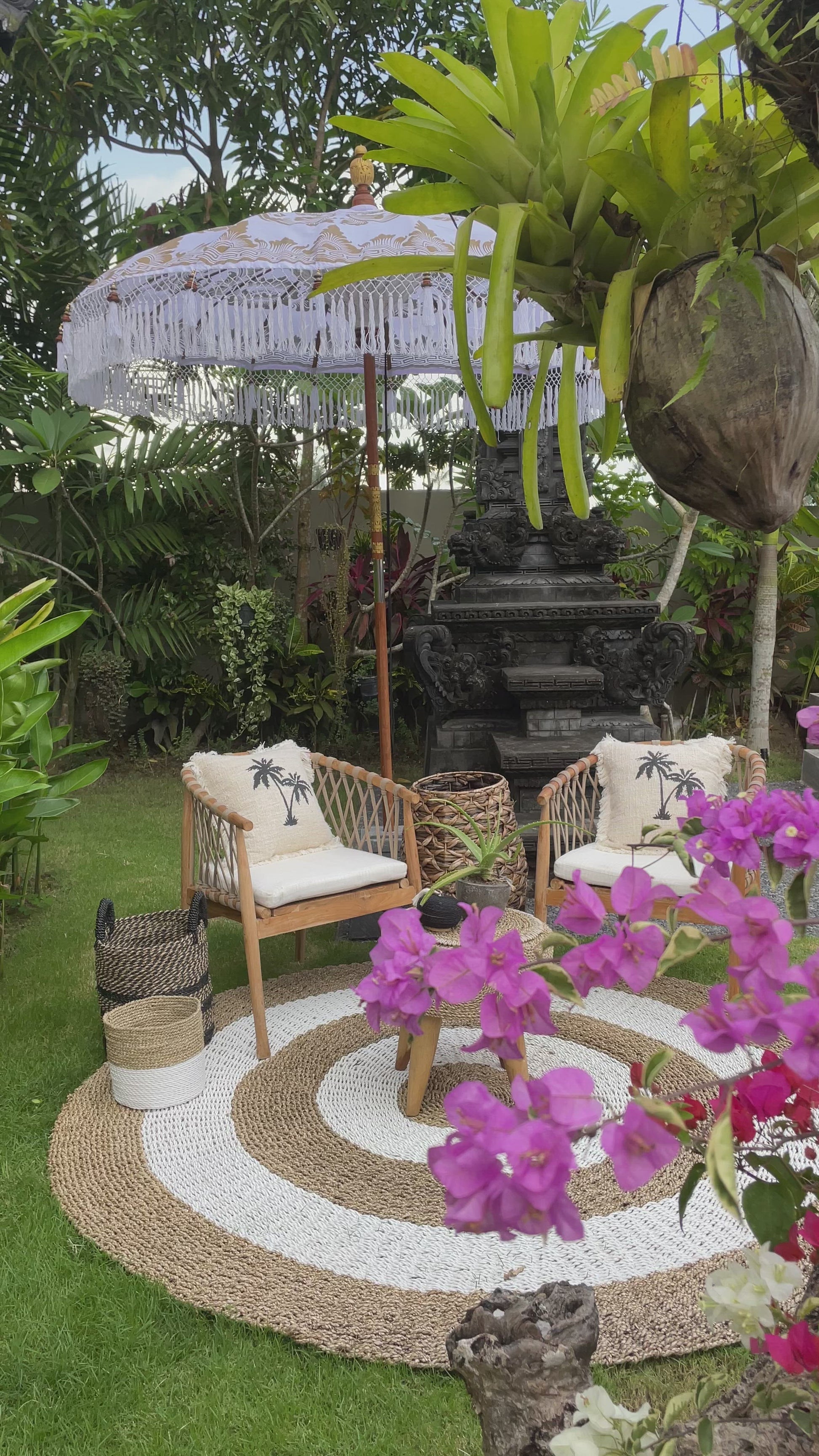 A soothing and elegant addition to your garden, balcony, an-suite, wedding or even alfresco dining. This special traditional Balinese parasol is a wonderful addition to a picnic, conservatory, patio, and sun terrace. The beautiful solid color is easy to style and can be combined with neutral tones or brighter shades. Applying this item in your home or garden will immediately create more atmosphere and coziness.