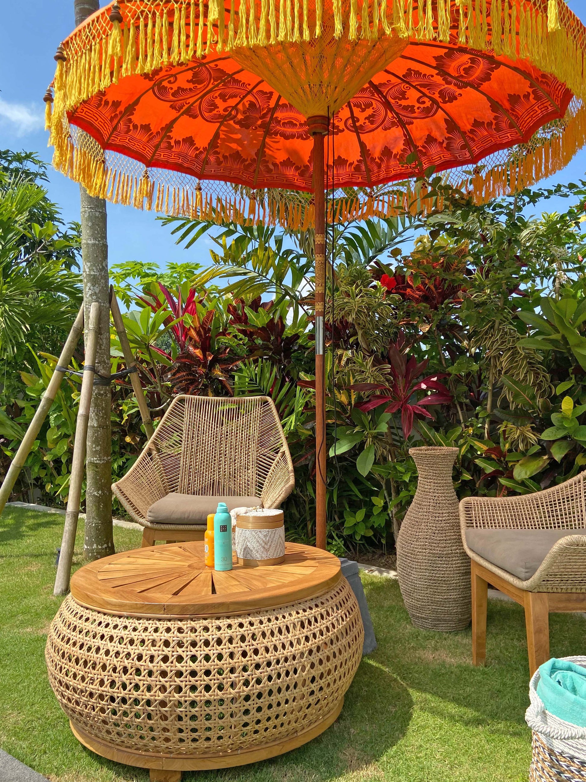 A soothing and elegant addition to your garden, balcony, an-suite, wedding or even alfresco dining. This special traditional Balinese parasol is a wonderful addition to a picnic, conservatory, patio, and sun terrace. The beautiful solid color is easy to style and can be combined with neutral tones or brighter shades. Applying this item in your home or garden will immediately create more atmosphere and coziness.